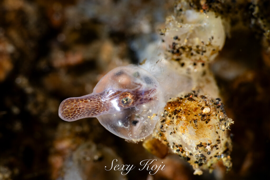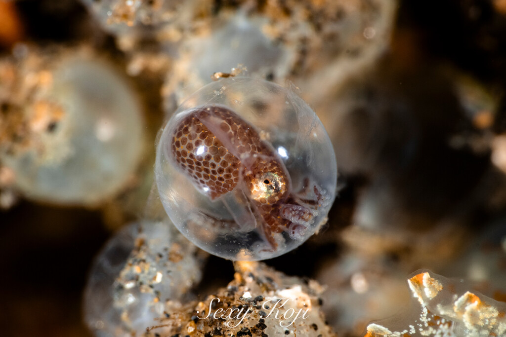 前回のガイド会ブログで記載したダンゴイカの仲間の卵は継続観察中です。