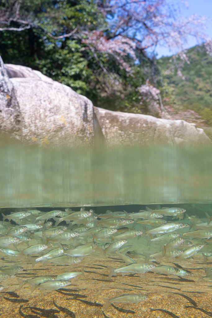 春の鮎と桜です。この鮎は琵琶湖産の放流鮎です。