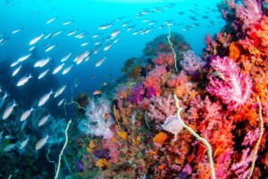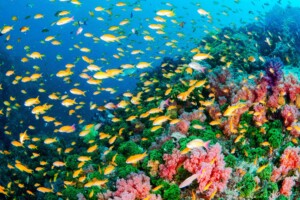 伊東の海の中でも最大クラスのキンギョハナダイの群れが行う産卵はどの角度から見ても迫力満点。