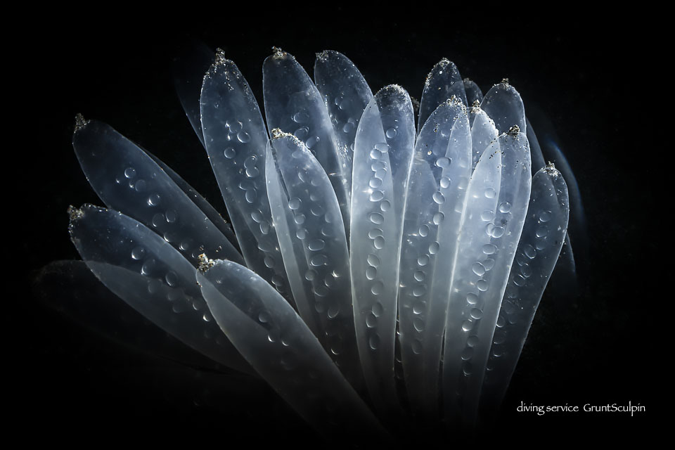 砂地に産みつけられた卵塊は透明感が強く美しい!