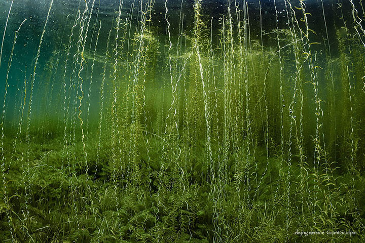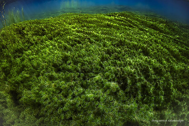 水底を覆い尽くすかのように繁茂するのはクロモです。