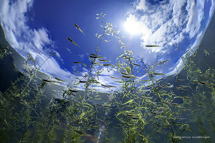 今年孵化したトウヨシノボリの稚魚たちが中層を気持ちよさそうに群泳いでいます。