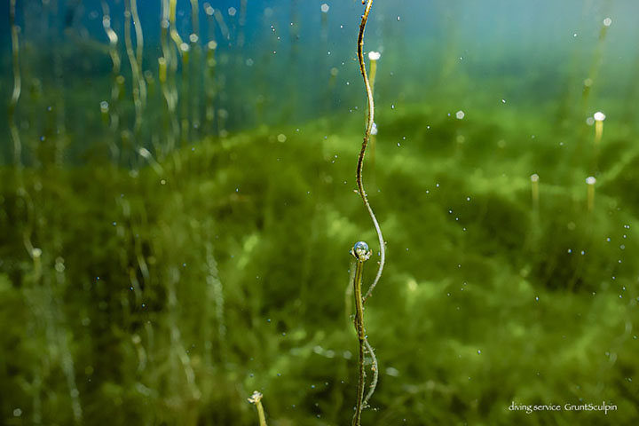 そして、受粉が完了するとスプリングを縮めるようにして水底に戻ってタネを作ります。