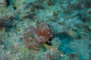 うねりを避けたポイントでキンチャクガニの脱皮を見ました。