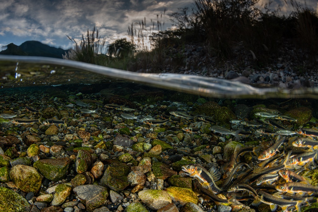 雨量が少なく渇水気味で、水深15㎝での撮影。流れが無いのは良いですが、浅すぎて体勢が辛い。撮影後は首、腰、背中がばきばきです。