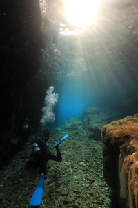 浅いキンメモドキ・スカシテンジクダイのいる根の周りで見れます。