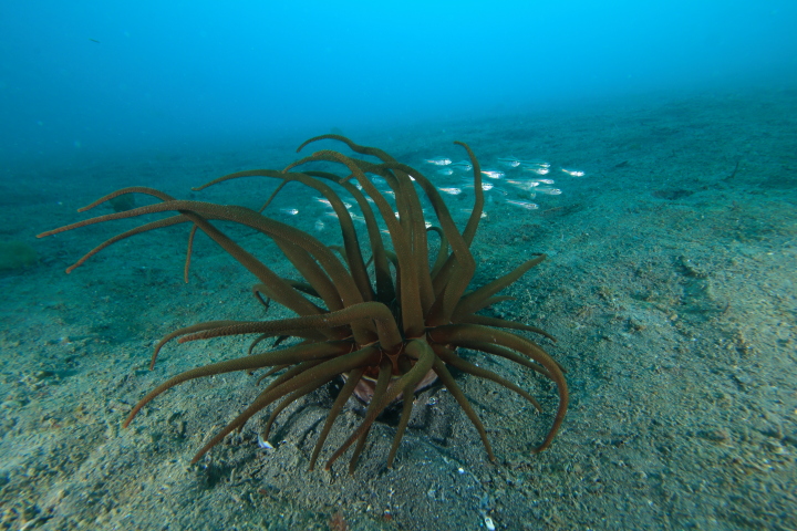 ポツポツとイソギンチャクの仲間が点在しているので、その周辺が底生生物のハビタットになっています