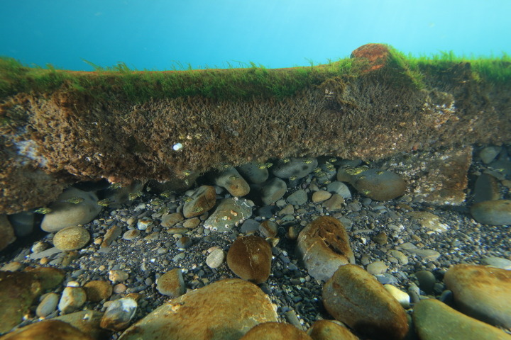 この時期になると膝丈ほどの浅瀬にカゴカキダイの幼魚がチラホラ観察されます