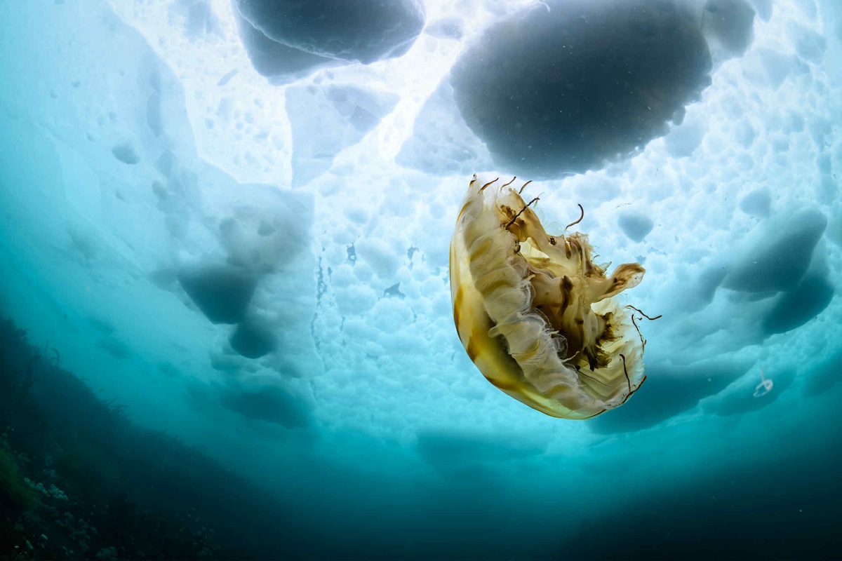 クラゲの仲間は流氷下では