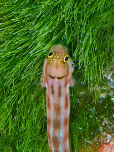 背中から見るとヘンテコな顔のイシガキカエルウオ。