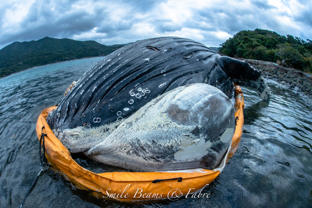 死後の漂着だったようで、辺りは腐敗臭が漂っていて私たちが知るザトウクジラの姿とは異なる様相です。